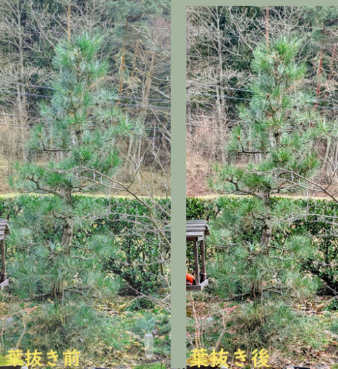 ・松の剪定をする・・・・と言っても伸びた新枝を落としたのみ。 ・16日 2時間かけて葉抜きした。 ★今ごろになって手入れ作業は寒くてかなわん。来年からは10月にしておきたい。・ |