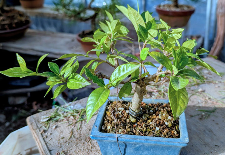 | 203 | ・挿し芽の赤松ポット上げ、三河松葉抜き ★三河松の間引き枝接ぎ木試行のため保存。 ・クチナシ少し枝を引っ張って下げる。 |