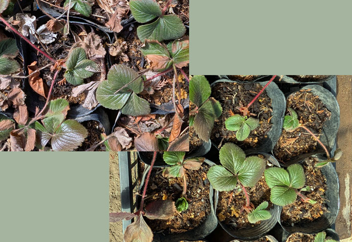・イチゴの枯れ葉を除去して化成肥料を施す。ハウス内へ移動。葉は1株に1枚しか残っていないが、芽は生きているので良いと思うがこれkらの生長に注目。 ・ 去年挿した松の状態:挿してポリ袋に包んで今日まで放置したもの。ほとんど枯れているが、いくつか葉が緑色を保っている。発根していればこれから新芽が伸びるはずだが・・・どうか? |