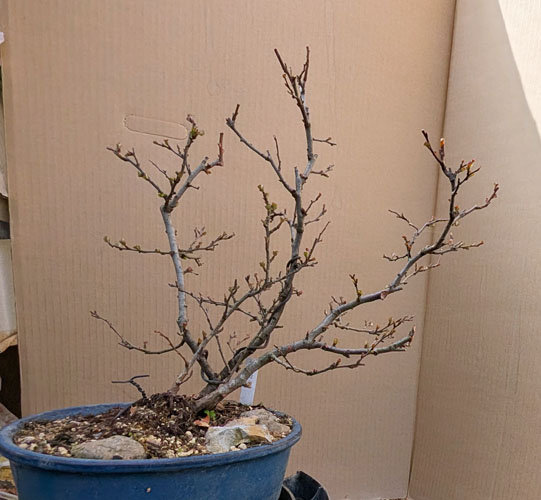 | 217 | ・春蘭に水やり。遅れて花芽 がいくつか出てきて去年より花芽が多い。 ・続アンズの枝切り。力が入りすぎてノコギリが手首に・・・、出血してきたのでそこでやめる |