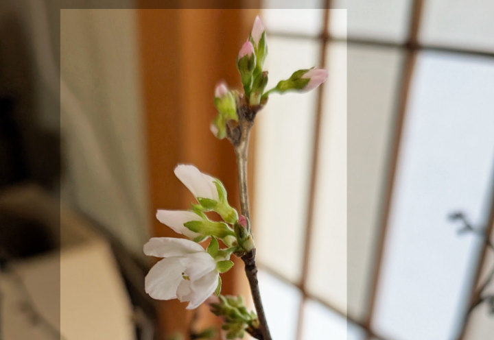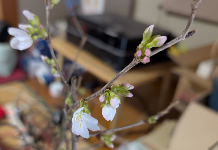 2月1日にコヒガンザクラ、河津桜 梅を切って花瓶に挿して室内においてみた